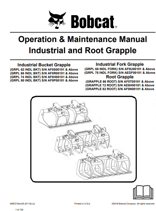 Bobcat Industrial Grapple Operation & Maintenance Manual