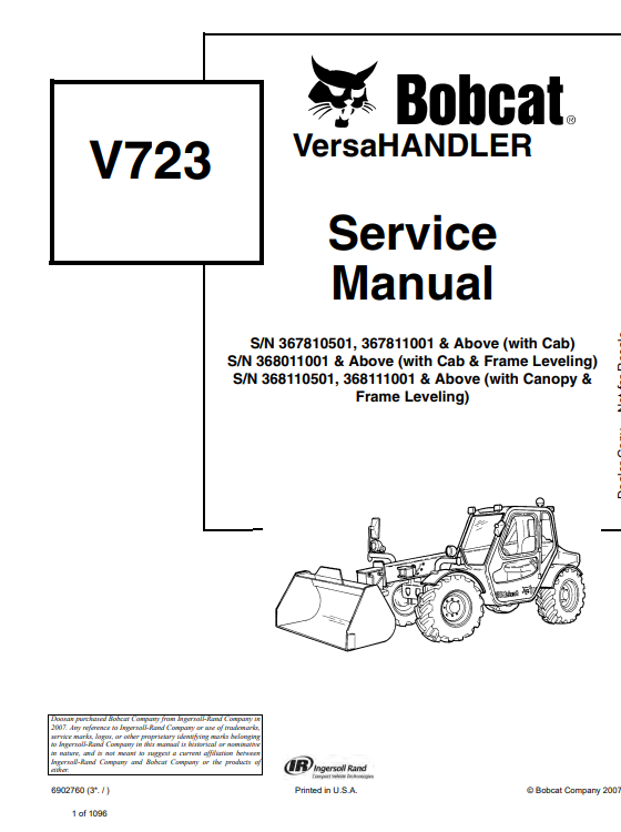 Bobcat V723 VersaHandler Service Repair Manual