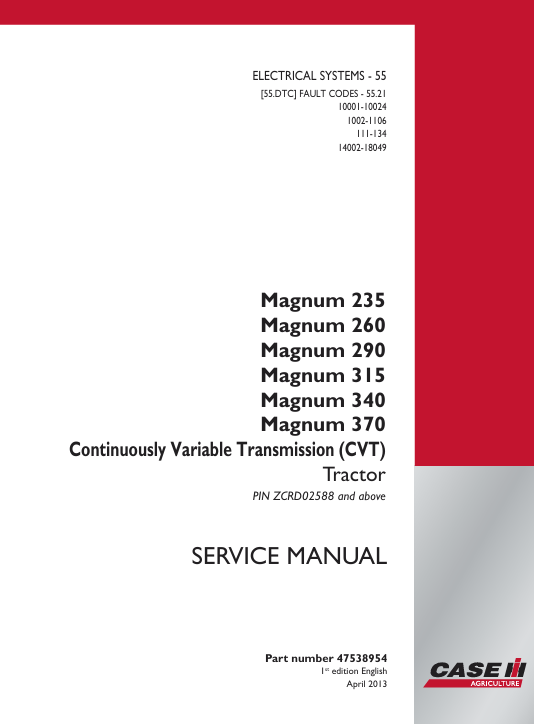 The Case Magnum 315 Tractor Electrical Systems Fault Codes Explanation is an essential resource for any operator or technician looking to maintain optimal performance and troubleshoot issues effectively. This comprehensive guide provides detailed insights into the various fault codes associated with the Magnum 315’s electrical systems, enabling users to quickly identify and address potential problems. With clear explanations of each code, including possible causes and recommended solutions, this manual empowers users to enhance their understanding of the tractor’s electrical components. By utilizing this invaluable tool, you can ensure your Case Magnum 315 operates at peak efficiency, reducing downtime and extending the lifespan of your equipment. Invest in this guide today to take control of your tractor’s performance and keep your operations running smoothly