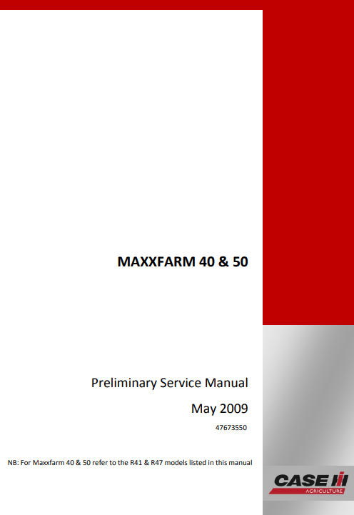 Case MAXXFARM 40, MAXXFARM 50 Tractor Preliminary Service Repair Manual