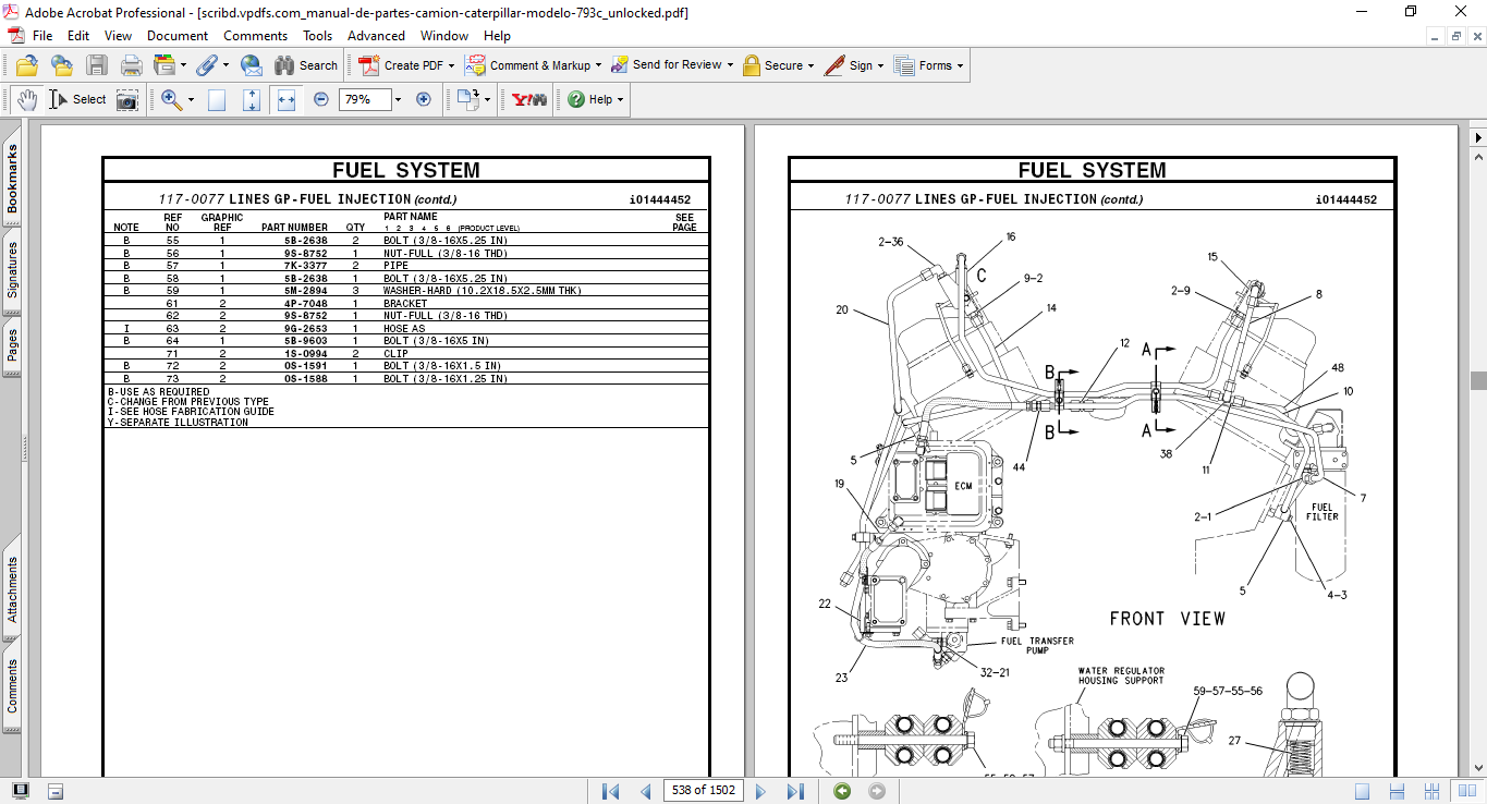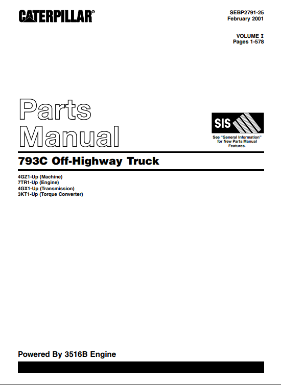 Caterpillar 793C Off-Highway Truck Parts Manual