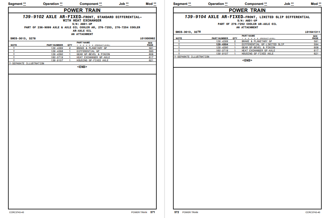 Caterpillar 966H Wheel Loader Parts Manual
