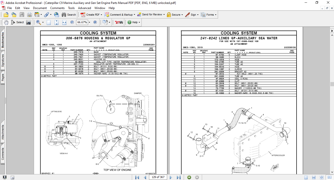 Caterpillar C9 Marine Auxiliary and Gen Set Engine Parts Manual