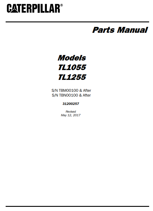 Caterpillar TL1055, TL1255 Telehandlers Parts Manual