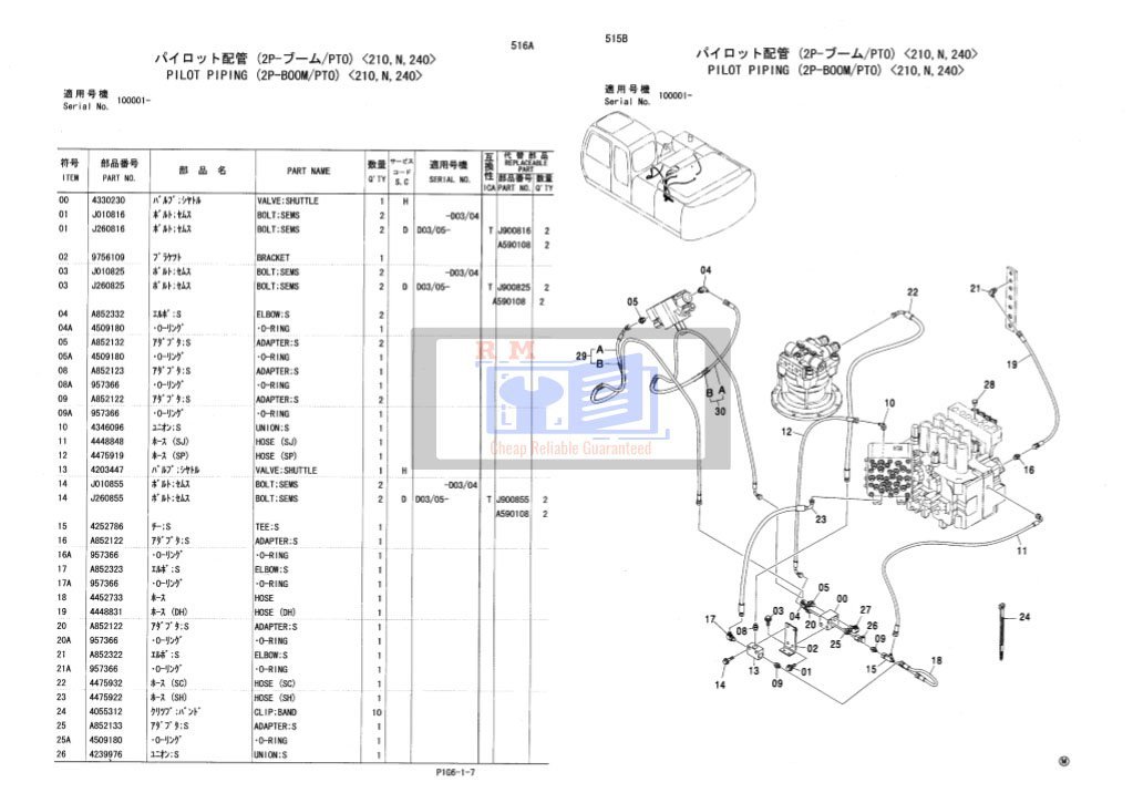 Hitachi Zaxis ZX200, ZX210, ZX240 Series Excavator Part Catalog