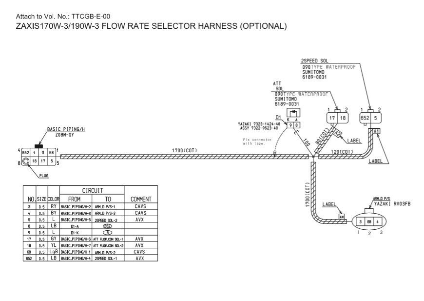 Hitachi Zaxis ZX170W-3, ZX190W-3 Electrical Harness Diagrams