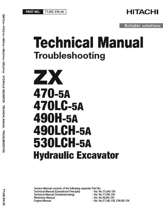 Hitachi ZX470-5A, ZX490-5A, ZX530-5A Series Technical Manuals