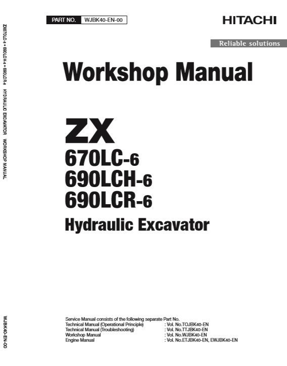 Hitachi ZX670-6, ZX690-6 Series Workshop Manual and Diagrams