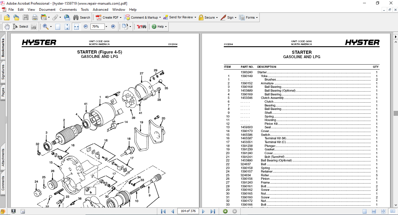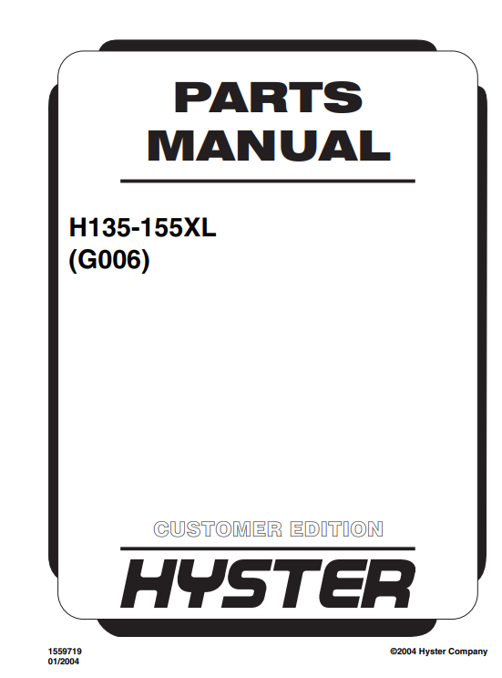 Hyster H135, H155XL (G006) Forklift Parts Manual