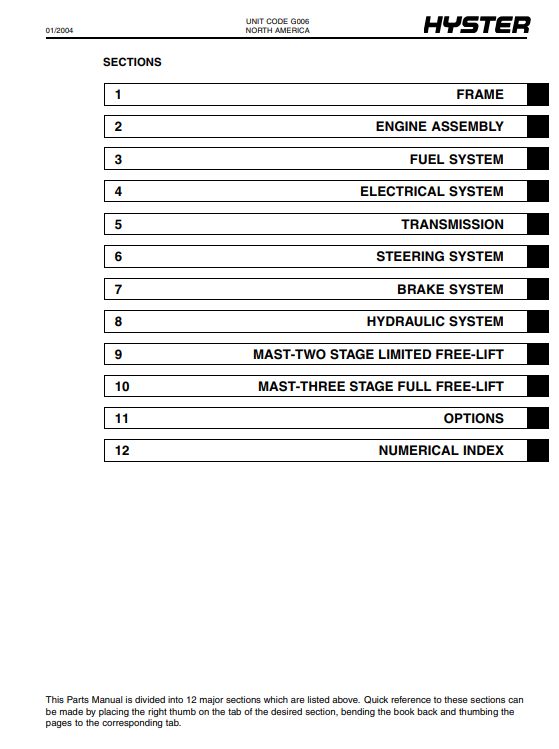 With This Original Factory Spare Parts Manual The Technician can easily find any Part Number and Correct Parts encountered in the operation of your Hyster Forklift Models of :