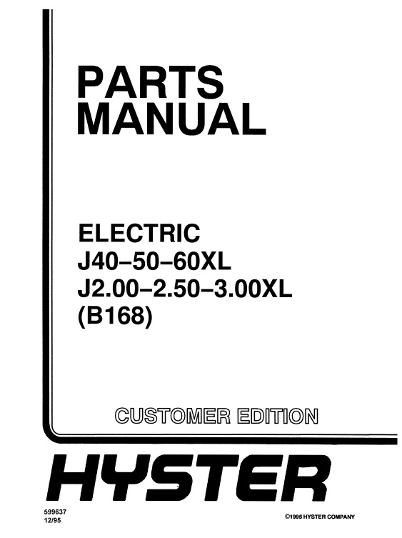 Hyster J40, J50, J60 (B168) Forklift Parts Manual