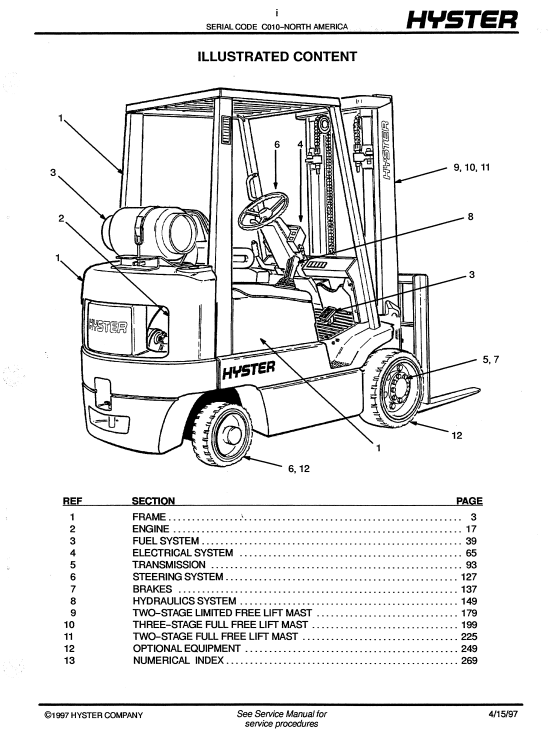 Hyster S25XM, S30XM, S35XM, S40XMS (C10) Forklift Parts Manual