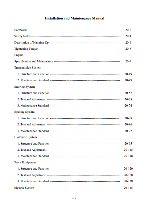 Hyundai Motor Grader HG220 Installation and Maintenance Manual