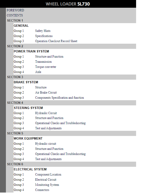 Hyundai SL730 Wheel Loader Service Repair Manual