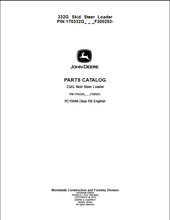 With This Original Factory Parts Manuals The Technician can easily find any Part Number and Correct Part encountered in the operation of your John Deere Skid Steer Models of :