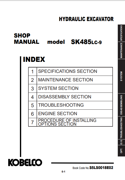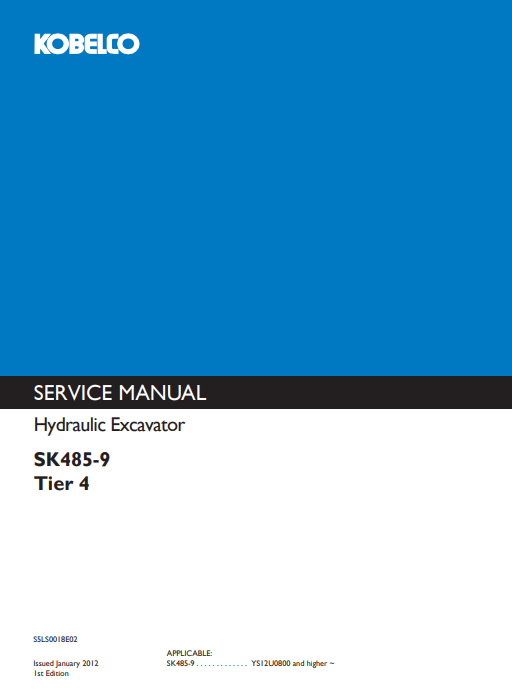 Kobelco SK485-9 Tier 4 Excavator Workshop Repair Manual