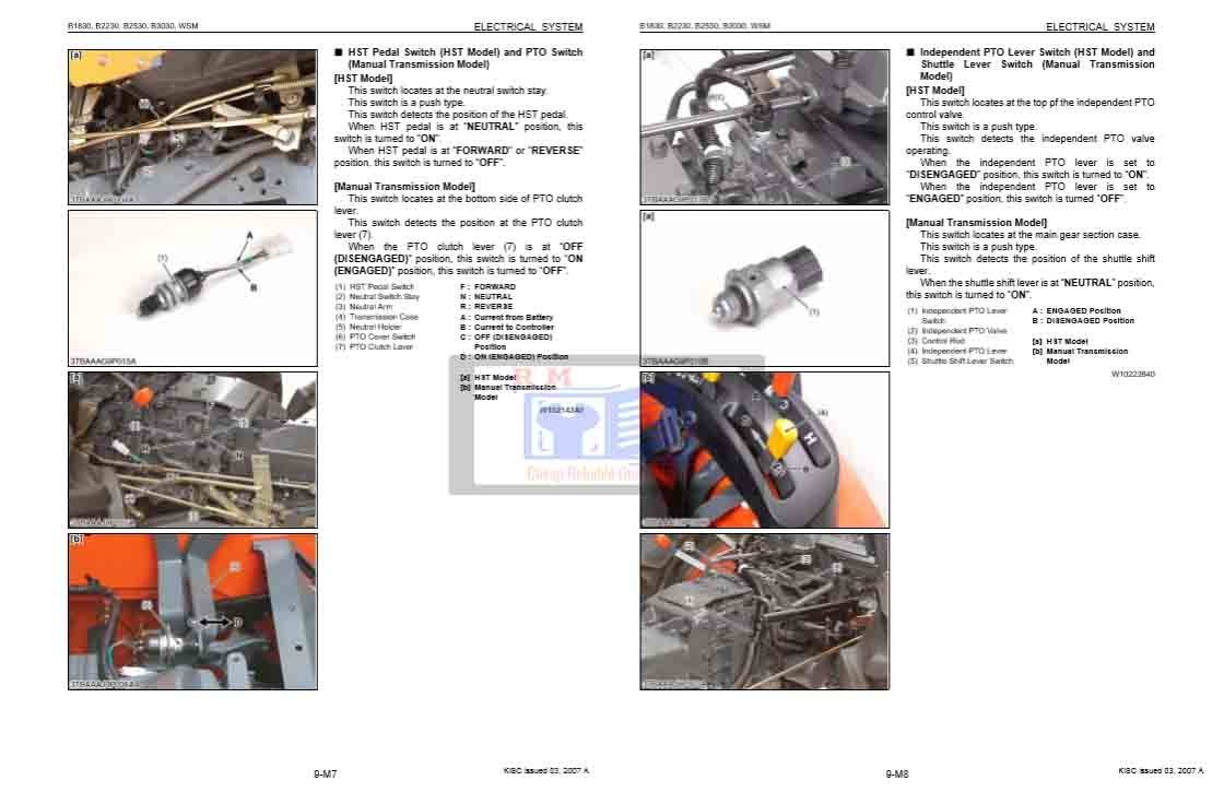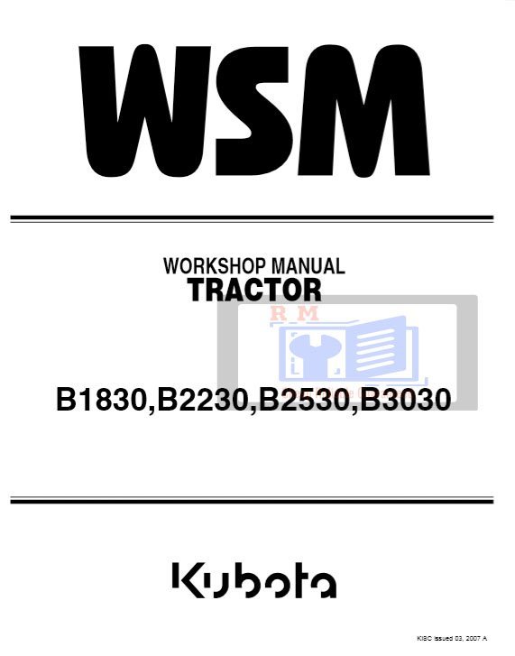 Kubota B1820 B2230 B2530 B3030 Tractor Workshop Manual