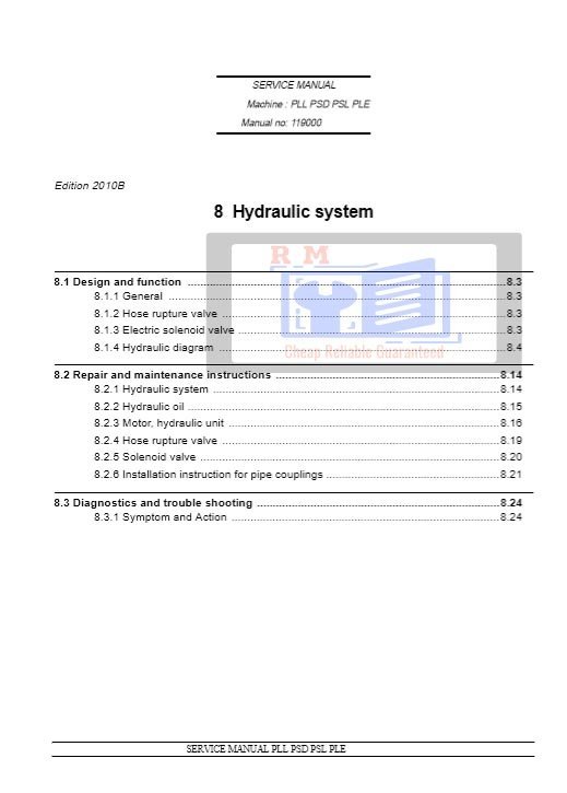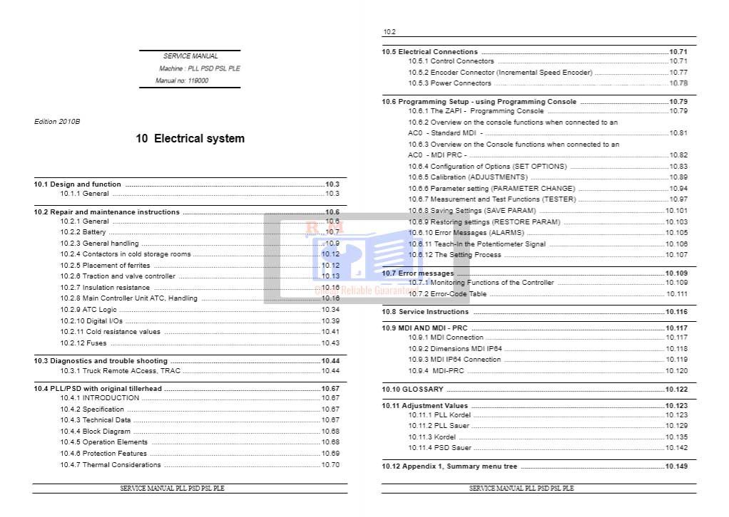 Nissan Forklift PLL, PSD, PSL, PLE Series Service Repair Manual