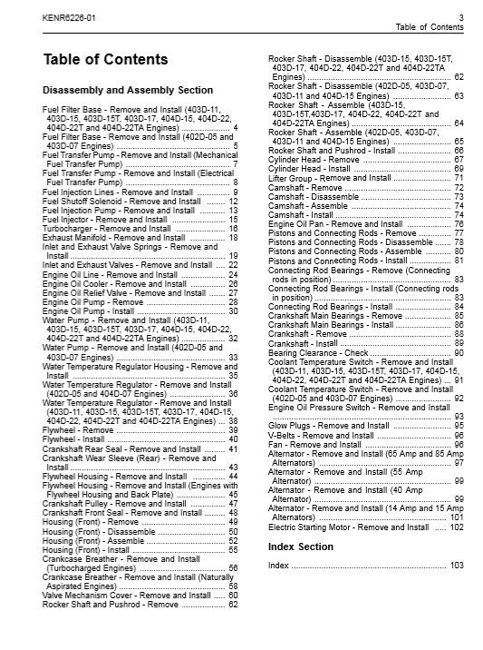 Perkins 402D, 403D, 404D Disassembly and Assembly Manual