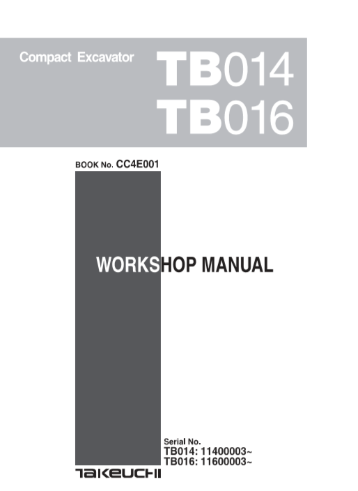 Takeuchi TB014 Excavator Workshop Repair Manual