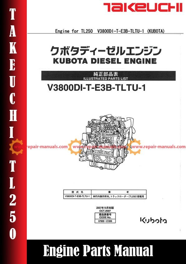 Takeuchi TL250 Skid Steer Engine (V3800DI-T-E3B-TLTU-1) Parts Manual