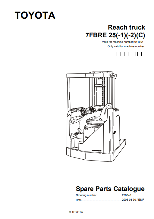 Toyota Reach truck 7FBRE25 (-1)(-2)(C) Spare Parts Catalogue